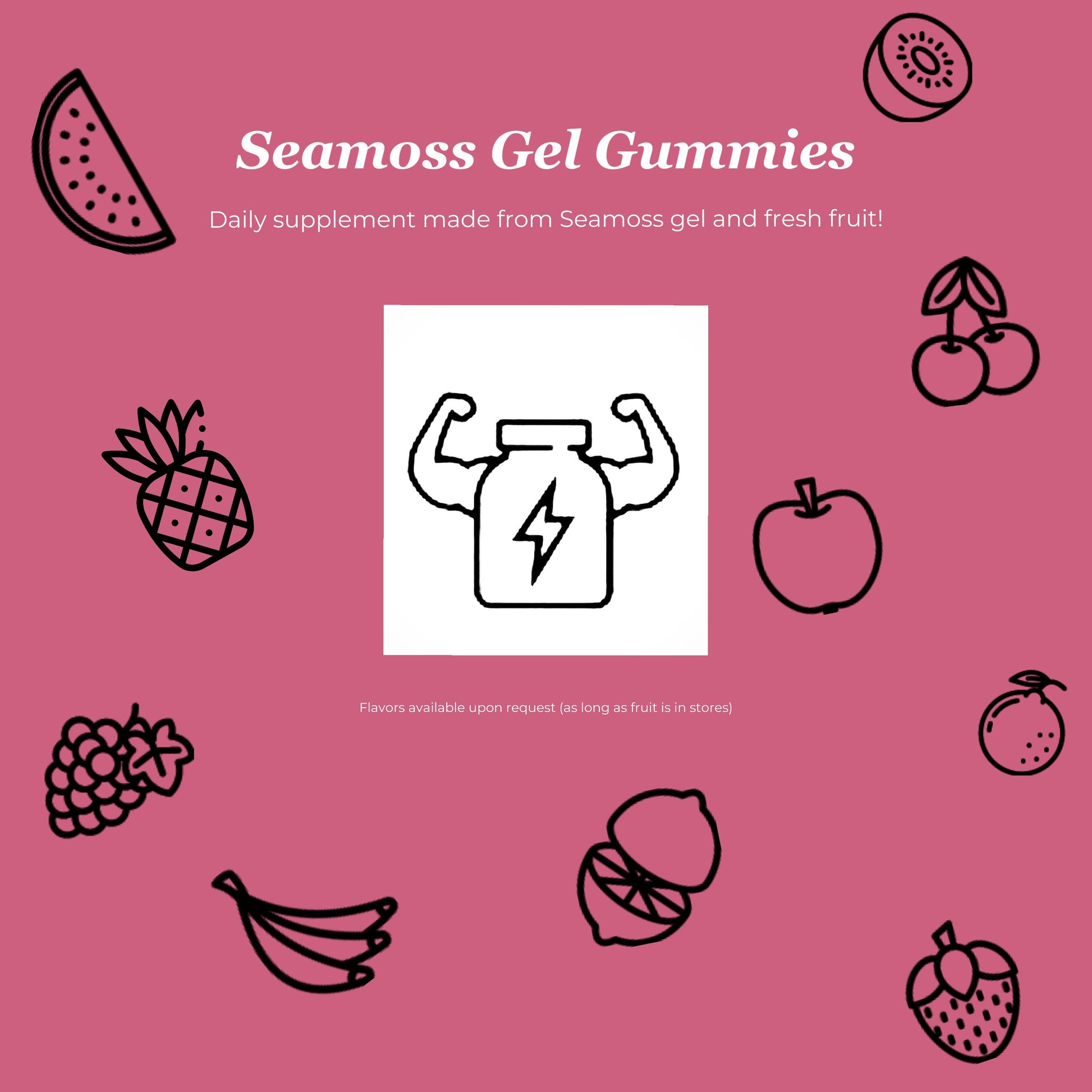 All of the amazing benefits of plain and flavored seamoss gel with none of the hassle! Easy to eat gummies taste great and are flavored with fresh fruit, flavors available upon request (as long as selected fruit is available in stores)